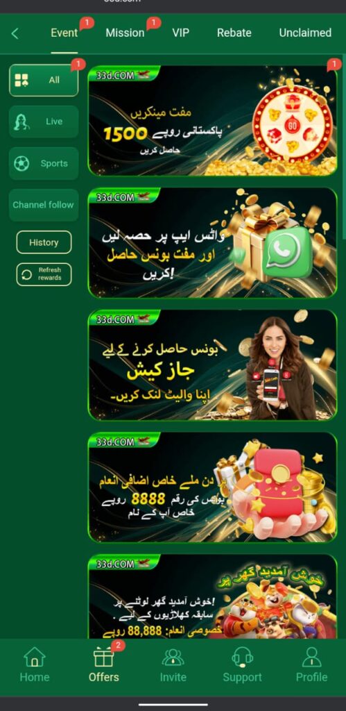 33D Game has stood out as one of the best online earning platforms in Pakistan that can smoothly work on Android devices. Its user-friendly interface and different free bonuses are the main reasons why millions of players regularly play. The main idea of this platform is to provide a free platform for players where they can earn money without working hard. After registration, you will receive a welcome bonus, which can be directly added to your real account. So give it a try and make sure you start your journey with a small investment.