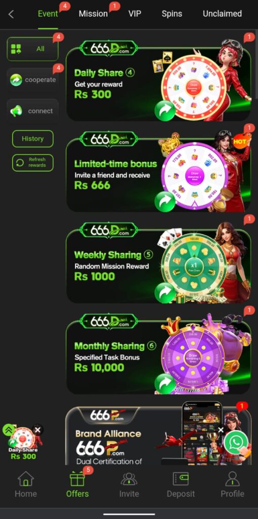 The Referral bonus is an easy and safe way to make money, where players don’t worry about losing. Players need to copy their download link and share it with their friends and family members.