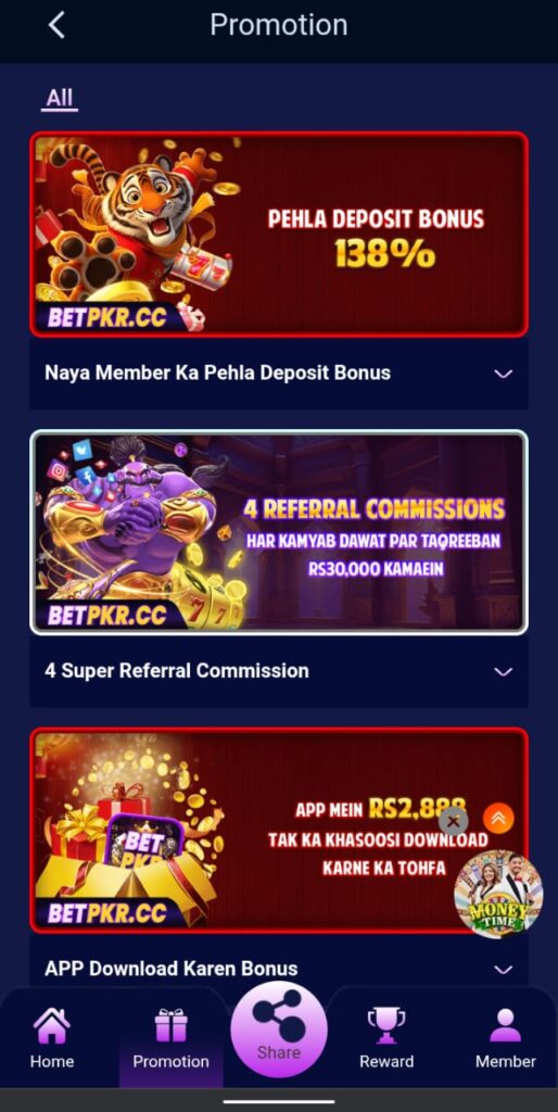 Betpkr Game Latest Version is not just a game; it’s like a lottery for players to make an unlimited amount of money. This app delivers pure entertainment and helps players add some Pakistani rupees to their Bank account. If, after reading all this, you also want to benefit from this game and earn money, then download now and start playing.