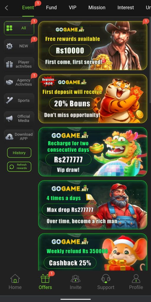 GoGame has become one of the best earning platforms in Pakistan, and people love to invest in this game. Users need to focus on improving their playing skills because their personal and transaction data is secure. The user-friendly interface and good sound effects can entertain players and create an amazing environment to play. Games like Aviator, Fortune Rabbit, Money Coming, Fortune Tree, Mines, Plinko, Dragon Tiger, and many more are free to play. To play all these mentioned games and many more, players need to download this game and create an account using their active phone number.