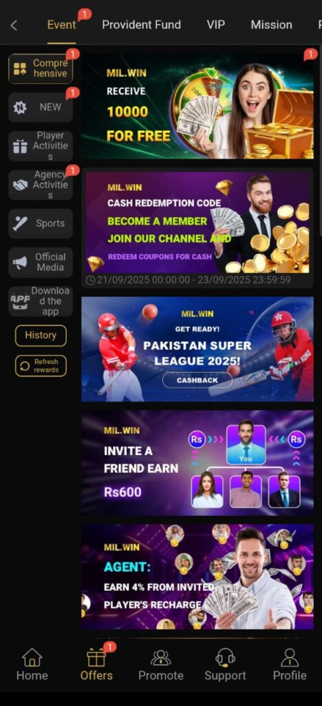 Mil Win Vip Game is a free platform for all those people who live in Pakistan, where you can become a millionaire by sitting on the sofa in the comfort of your home and pressing a single button. Where do you find such opportunities in today’s difficult times? So if you are looking for an opportunity that will help you become a millionaire easily, then this opportunity is for you. Grab this opportunity with both hands because if your luck runs out, no one can stop you from becoming a millionaire that day. So believe in your luck and press the download link to register your account. Once you complete your very easy registration process then you can start playing any game.