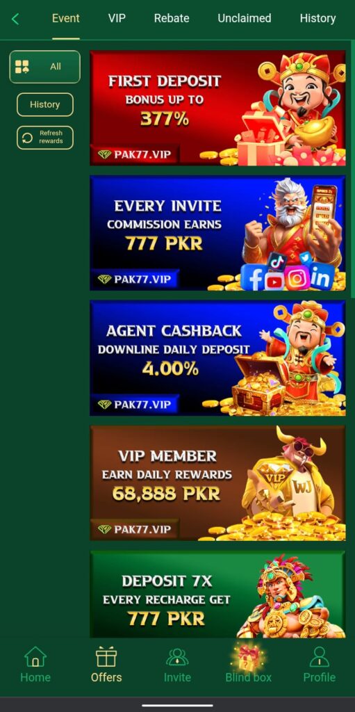 Pak77 Game 2025 has received the necessary approvals from Pakistan’s regulatory authorities, so it’s fully legal for players in Pakistan to download and use. Because it’s locally licensed, Pakistani players can enjoy a safe, secure, and fast gaming experience while taking advantage of the platform’s bonuses and promotions. Different kinds of bonuses are free to collect. Players just need to register their accounts to collect all bonuses. The registration process is also easy; players just need to connect internet service on their device and add a phone number or email address. Players also need to create a strong password to make their accounts safe and secure.