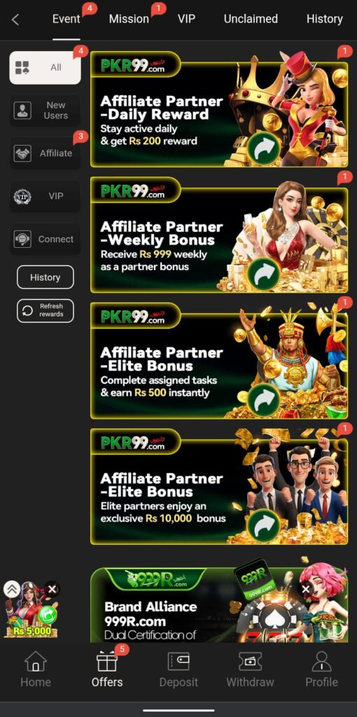If you have accidentally downloaded an old version from another website, you will not get all these features in it, so we request that you download the updated version of PKR99Game from the official page to use all these features.