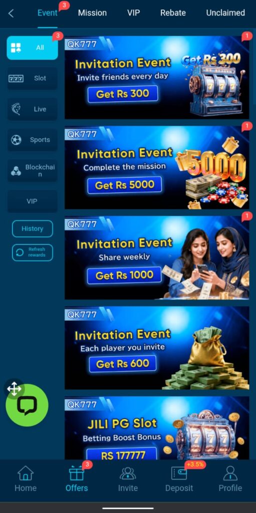 QK777 Game is a new Android app for those people who live in Pakistan. It supports only Pakistani payment methods like Easypaisa and Jazz Cash. Players can use these to safe and secure platforms to transfer their money. The wide range of Games like Crush777, Fortune Gem 3, Aviator, Jungle King, Milky Moolah, Hot Buffalo, Triple Seven, Teenpatti, Candy Bonanza, Money Coming, and many more make this game more interesting. Players can play any game according to their mood and try to make money. All these are different from each other and bring a different vibe. To start playing all these games, players just need to download and register their accounts.