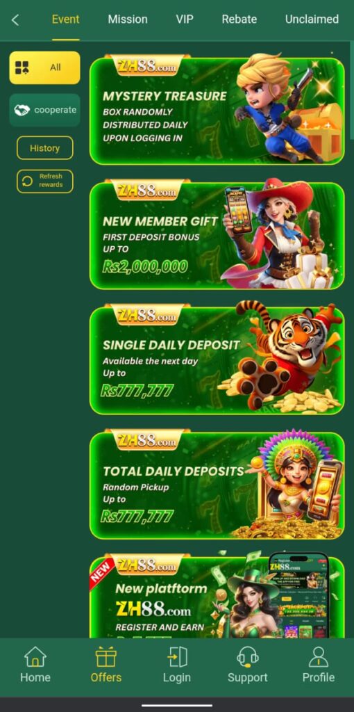 As we all know, there are thousands of platforms in the market today that claim to allow you to earn money. This is all a lie because only some of these platforms allow you to earn money, and ZH 88 Game is one of them. This app provides different types of bonuses like daily boy, referral bonus, weekly bonus, and spin wheel bonus. Using all these free bonuses, players can increase their balance.